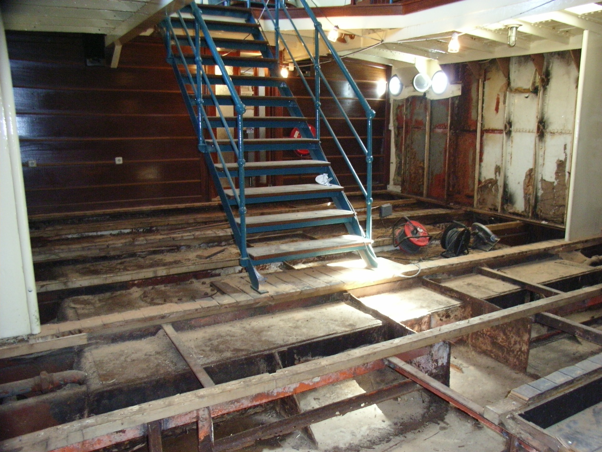 Skibsmotor er fjernet, til fordel for køkken og køl m.v.