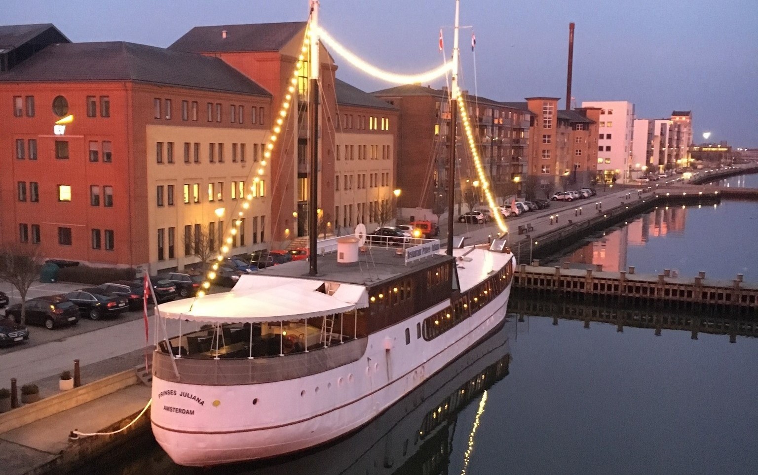 Prinses Juliana har ligget fast ved kaj på Aalborgs havnefront ved Limfjordsbroen siden 1993.